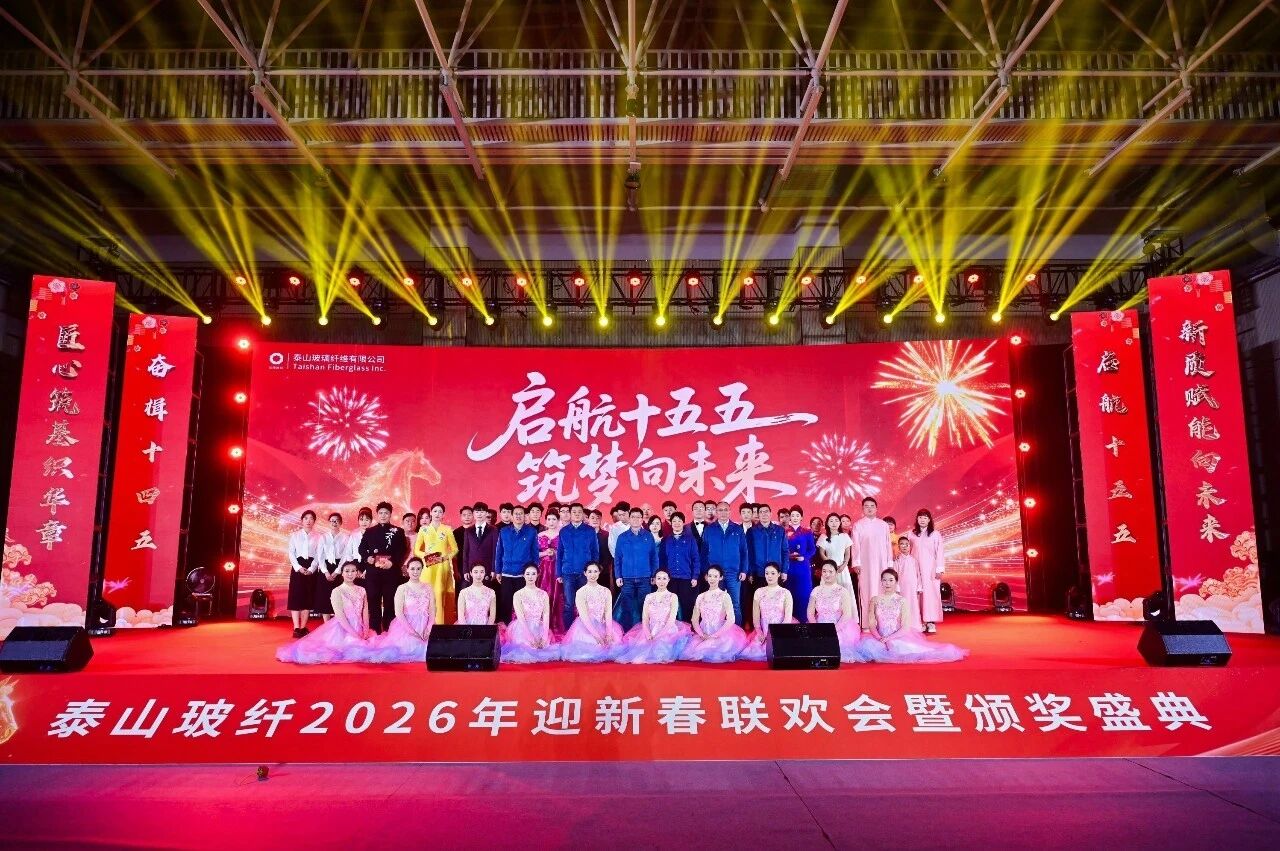 啟航十五五,筑夢(mèng)向未來(lái)。2月10日,泰山玻纖2026年迎新春聯(lián)歡會(huì)暨頒獎(jiǎng)盛典在泰安總部熱鬧上演。泰山玻纖黨委書(shū)記、董事長(zhǎng)呼躍武,黨委副書(shū)記、總經(jīng)理劉利鋒等在家領(lǐng)導(dǎo)班子...